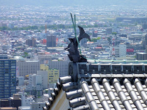 城の屋根に飾られたしゃちほこです。