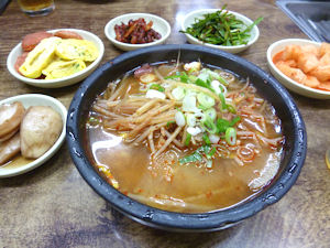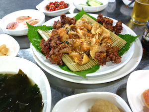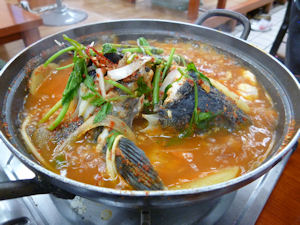 チャガルチ市場の海沿いに右側に行くとお店がずらっと並んでいます。その中の一つの店でメバルのチゲ鍋等をいただきました。スープが美味しい♪