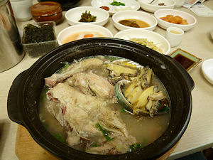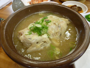 サムゲタンの専門店でスープが3種類用意されています。私達はせっかくだからと高麗人参の入ったものを注文。さすが専門店、生薬を加えたスープなのに食べやすく美味しかったです。