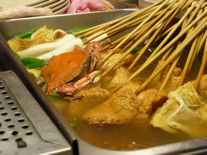 ここも夜の露天商。渡りガニで出汁をとった韓国風おでんです。