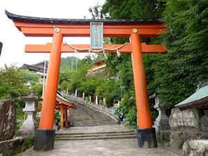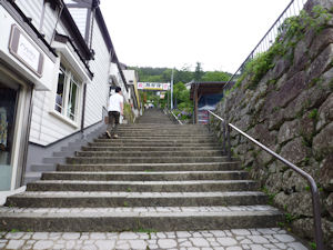 長い階段をずっと登って行くと、途中土産物屋さんがあります。那智黒の飴や碁石、箸が多かったです。 |