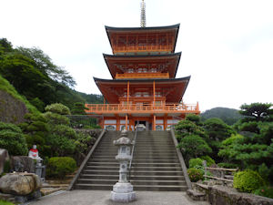三重塔には千手観音が祀られています。エレベーターで上まで上がると那智大滝の滝壺まで見ることができます。 |