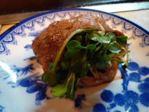 <十三:都> 鉄板とお好み焼きの店で、お客さんの顔を見ながら料理をしてくれます。メニューが決められない人にはお任せで気楽な店です。もちろん料理も美味しいし気さくなママとの会話も御馳走です。出して頂いた料理です。 時間 :17:00~25:00 TEL :06-6886-3890 定休日 :土日祝日 |
