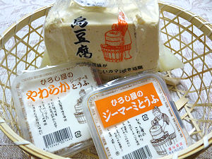 島豆腐の店です。沖縄のお豆腐は普段食べている豆腐とは違います。豆腐自体に味がありしっかりしています。調理しても煮崩れしないのでチャンプルや厚揚げにもOK。ジーマミ豆腐は落花生と生のピーナツで作られた2種類があります。