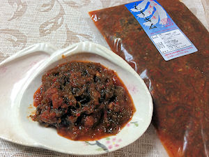 その名のとおり、もずくのキムチです。那覇空港、または沖縄物産展の催事で購入します。店舗はありません。注文の場合は電話かFAXで。