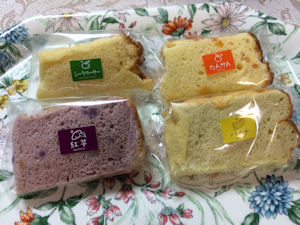 琉球の色遣いで、さつま芋と紅芋を使ったケーキです。後味も甘すぎず上品な味。