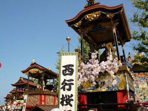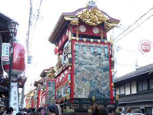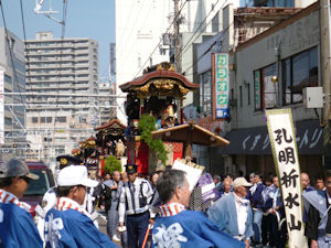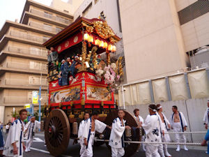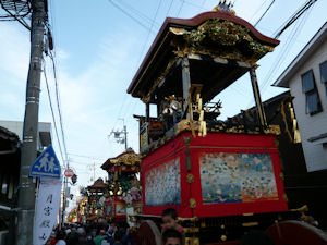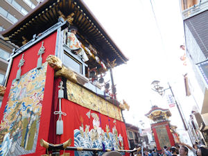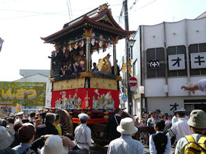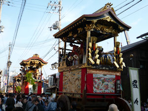 各ポイントで、それぞれの曳山が、からくりのお披露目をした後に、厄除けちまきや、ちまき、手ぬぐいを投げるので、その時は大騒ぎです。