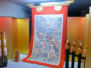 赤い着物を着た人形がお囃子に合わせて、タンバリンを鳴らします。