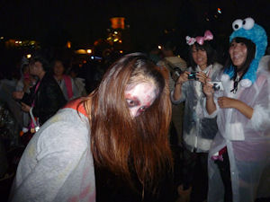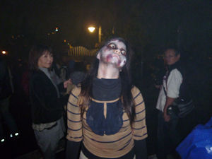 女性のゾンビですが、、可哀想に子供にお尻を触られたようでゾンビを演じながら子供に注してた瞬間。