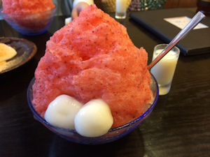 <桂:中村軒 茶店> 季節のかき氷はフルーツを使った蜜がたっぷりかかった大人の味です。「麦代餅」はつきたてのお餅に自家製の餡をはさんだもので餡は甘さ控えめで、上品な味です。是非お餅が柔らかいうちに、その場で食べて欲しいと思う一品です。、茶店メニュー。 時間 :9:30~17:45 TEL :075-381-2650 |