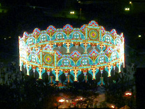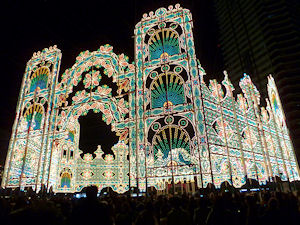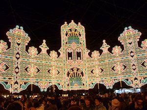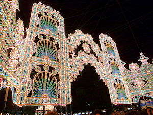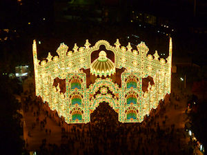 初めての試みでLEDを使った電飾です。柔らかい光と違って、色が引き立ってました。