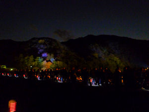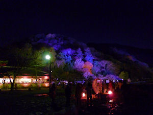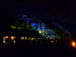 暗くなるにつれて、ライトアップされた山が浮き出ってきます。