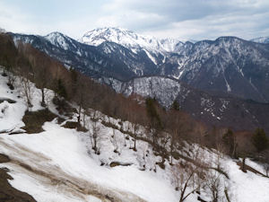残雪のある山々がとても綺麗です。