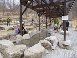 中継点には足湯や温泉施設、等があります。 バスで来られる方は、ここでゆっくり時間を過ごしていらっしゃるようです。
