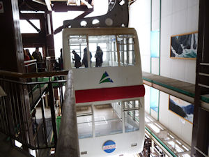 最初のロープウェイから2分ほど歩いて別のロープウェイに乗り換えます。最初のものは約40人乗りで、次のは日本発2階建ての120人乗車できる大きなものです。