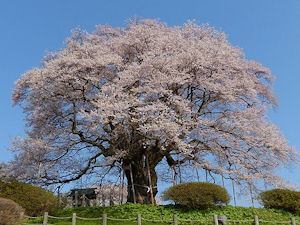 混み合うためJR美作落合駅または月田駅からタクシー(40分)で向かうのがベスト。見頃は4月上旬~中旬で樹齢1000年の1本桜です。満開の時は夜ライトアップされます。