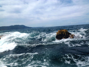 外に出ていくにつれ、波がうねりだし波をバシャバシャかぶりながら進んでいきます。