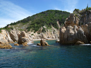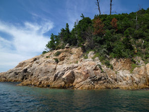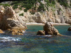 透明度が高くとても綺麗な海です。潜りたい衝動にかられますね。