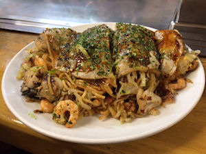 広島駅南口のアッセ内にあるお好み焼屋さんで、冬期限定の牡蠣がが入ったスペシャルを注文。麺はケチャップで炒めてから使用していました。ボリュームもたっぷりで美味しかったです。