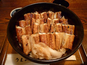 穴子飯の種類は小、中、特上。でも大きさが違うだけだったような。穴子は甘辛いたれをつけた後炭で香ばしく仕上げてあります。ふっくらした他で食べる穴子と違って美味しいですが行列は覚悟で、、