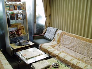 こちらはフロントの側にあるロビー。インターネットに繋がったノートパソコンが1台置いてあり、自由にWebが見れるようになっていました。