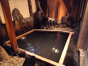 | 泉質/泉質適応症 | ナトリウム・カルシウムー塩化物泉 切り傷、火傷、慢性皮膚病、慢性婦人病、虚弱児童 |