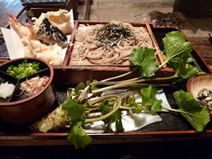 「禅風亭なな番」という蕎麦屋さんで、天ぷら蕎麦を注文しました。手打ちのお蕎麦に持ち帰り用として生わさびが付いています。少々待つ覚悟で出かけた方がいいですよ。