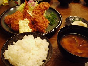 揚げたての柔らかい豚カツです。写真はミックス定食。ノーマルなものや写真のような変り豚カツもあります。マウスを合わせてね!ご飯やキャベツのお代わりはもちろんOK。