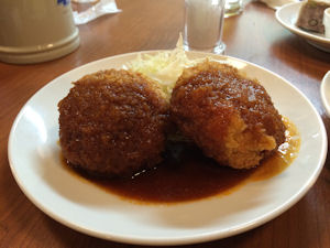 新梅田食道街にあるお店で、大ぶりのエビフライとメンチなどをいただきました。エビはプリプリで食べごたえがあります。普段遣いにとってもいいですね。