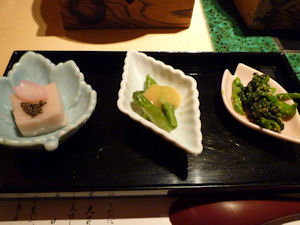 作りたてのおぼろ豆腐が甘くて美味しいです。最初はそのまま、次に沖縄の塩やゴマの入った梅塩や醤油で食べたりお好みで。おぼろ豆腐はお代わり自由でした。写真はコースの一部です。