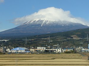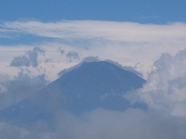 ちょうど富士山をベールで隠したように雲がかかっています。
