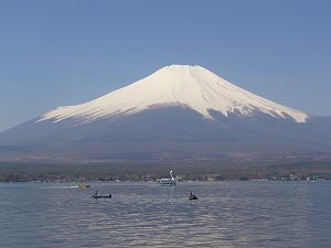 山中湖から見た、夏富士です。天気が良く風のない状態であれば逆さ富士を見る絶好のポイントです。