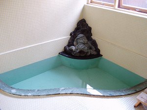 3人ほどの大きさで、洗い場は一つです。湯口はなぜかタコと蛸壺をかたどったもので、ちょっとユニークです^^