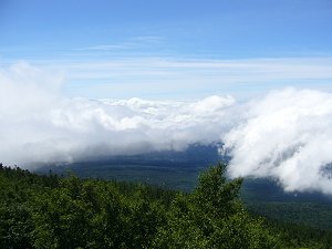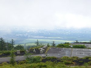 御殿場登山口から見た景色ですが、曇っていて視界が悪いです。下で雷が鳴ってました^^;