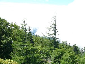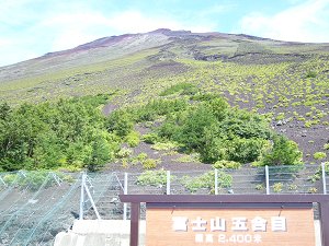 富士山の新5合目です。頂上がすぐちかくにありそうです。ここから木々がなくなるので火山岩をひたすら歩くのみ^^;