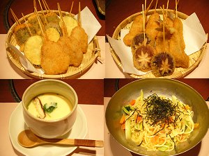 <荒河:桂山> 鍋物、串焼き等の店。写真は舞妓セットの一部でデザート、パスタまたはご飯は好きなものをチョイスで来ます。 時間 : tel :0773-24-3323 |