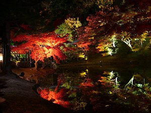 ライトアップされた木々が水面に映し出されているのが綺麗です。風もなかったのでラッキーでした。