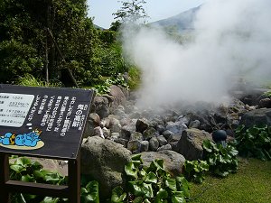 ◆かまど地獄 :含芒硝弱食塩泉 かまど地獄は1丁目~6丁目まであり、それぞれ異なります。名前の由来は地獄の噴気で御供飯を炊いていたからだとか。90℃あります。 |