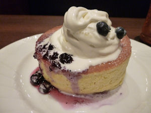 スフレタイプのパンケーキでて中はふわふわ、温かい♪ソフトクリームも熱で溶けるのが早いです。程よい甘さですね♪