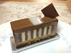 ワールドチョコレートマスターズ2009(世界唯一のチョコレートの世界大会)で優勝された方のお店です。 そうなると、気になるのはやはりチョコレートを使ったケーキですよね♪ケーキにコーティングされてるチョコはとても滑らか。