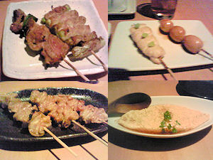 <烏丸:炭火串焼き『こけこっこ』> 備長炭で焼きあげた串は、周りは香ばしく中はふんわり。単品は高めなのでコースがお徳かも? 時間 :11:00~23:00 tel :075-365-3390 |