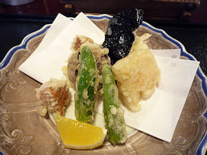 <嵐山:熊彦> たん熊の系列で嵐山の川沿いにたたずむ割烹料理屋です。季節のものを取り入れた料理が味わえます。今回は初めて食べた乾燥イチジクを使った天ぷらがありました。写真はお昼の湯豆腐会席の一部です。 時間 :11:30~15:00/15:00~21:00 TEL:075-861-0004 |