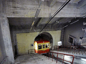 黒部平から黒部湖を結ぶのはケーブルカーです。このケーブルカーはずっとトンネルの中を走ります。