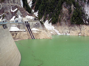黒部湖の側に湧き水があり、ペットボトルに入れて持ち帰る人がたくさんいました。