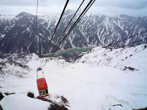 大観峰から黒部平まではロープウェイで。支柱のない長さとしては日本一だそうです