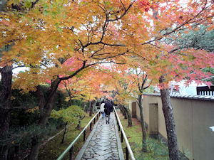 このお寺で有名なのは「光悦垣」といわれる斜めに組んだ垣根です。