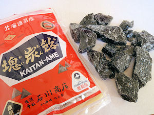 <:石川商店> 見た目は炭のような色と形で、天然ビートを使用、ニッキの味をした柔らかい甘みのある飴です。 URL :北の森ガーデン |