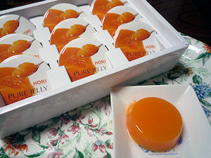 <夕張:夕張メロンピュアゼリー> 夕張メロンをそのまま食べているみたいに、口いっぱいに味が広がります。食感も普通のゼリーと違い果肉感があります。 URL :HORI |