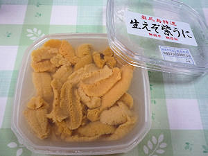 <登別:蝦夷ばふんうに> 身がしっかりとしたとても甘いうにです。うにを取り出したあと無添加の塩水につけた状態で送られてきます。 URL :温泉市場 |