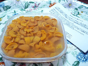 <奥尻島:獲れたて生ムラサキウニ> 塩水につけた状態で送られてきますが、ウニに生臭さがまったくなく、とろっとしていて甘くて美味しいです。 URL :北国からの贈り物 |